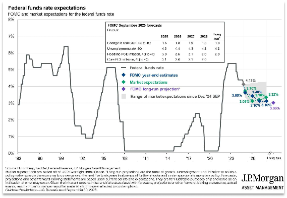 We would be remiss if we did not mention the additional complication of the ongoing government shutdown, which has stopped the release of some economic data, so that the Fed is currently trying to navigate while partially blind. Previous government shutdowns have typically been brief and so had minimal long-term impact. A shutdown lasting months rather than weeks would be uncharted territory, but that’s a hypothetical that’s still some time away from becoming a reality.