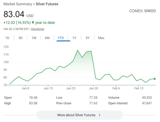 Massive movements are not limited to individual stocks. As Carlson observes in another article, silver has fluctuated wildly this year: