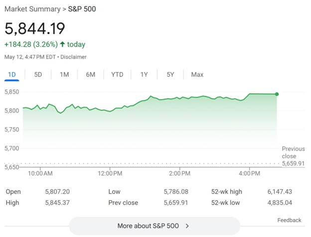 And within a few days, President Trump made a major adjustment to tariffs of China. Reciprocal tariffs between China and the United States were cut on Monday from 125% to 10% for the next ninety days. Market reaction was quite positive: